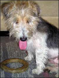 unghundstjej, som gärna busar med Biggles. Har visat Biggles