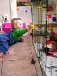 assisterade glatt med diverse leksaker från andra sidan gallret. |
