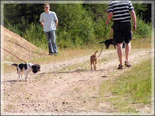 Vardagslydnads/valpkurs 1:a tillfället; 14/8-04 Biggles skötte sig över förväntan. När han inte distraheras kan han alla de saker som vi övade på, men det svåra var givetvis att lyssna på matte & husse trots att det var 7 andra hundar närvarande. Det gick ändå relativt bra första gången. Det vi behöver träna mest på är Nej-övningen. Att gå förbi en matskål utan att kolla innehållet är i princip helt omöjligt om man frågar Biggles. Den sociala träningen kursen innebär är kanon för oss.