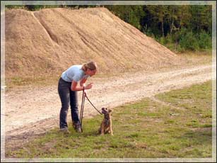 riktigt duktig, speciellt med tanke på att det regnade. 3:e tillfället; 11/9-04 Biggles hade ganska svårt att koncentrera sig vid inkallning i början. Det är alldeles för intressant med de andra hundarna. Efter ett tag gick det bättre, och allra bäst går det om man först använder sig av stanna. De andra övningarna gick riktigt bra, och han var uppmärksam och samarbetsvillig. Men "fri lek" på slutet är fortfarande roligast.