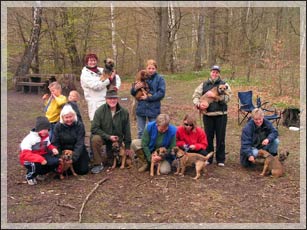 8/5: Pga Biggles kloskada missade vi lite träning och därför kändes det inte som om han var färdig för anlagsprov på avslutningsdagen. Vi ska försöka spåra lite med honom under sommaren och så kanske vi kan gå prov till hösten. Idag fick Biggles gå ett ca 400 mter långt spår, med 3 vinklar och ett bloduppehåll. Efter en del vimsande i början, då han inte riktigt verkade koncentrera sig på spåret gick det bara fint. Vid första vinkeln missade han och gick på vilt. Pär lyfte tillbaka honom och sen gick han som en klocka snabbt och lätt fram till skanken. Därefter blev det kursavslutning med god knytkalasbuffé ute i skogen.
