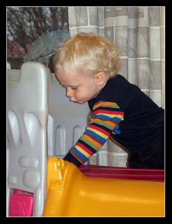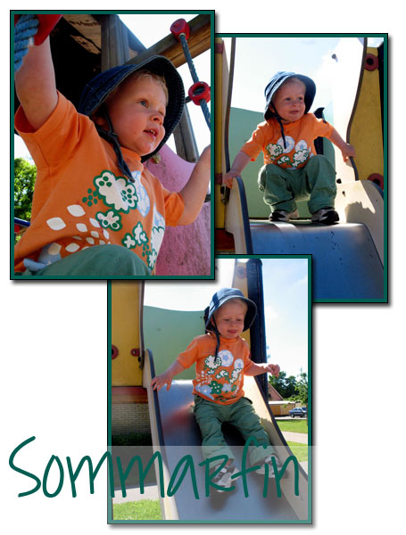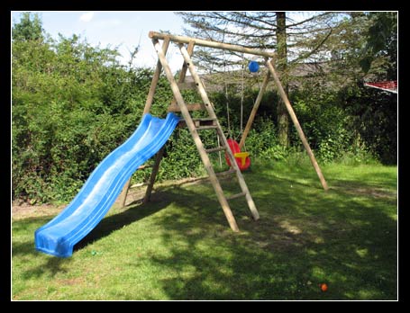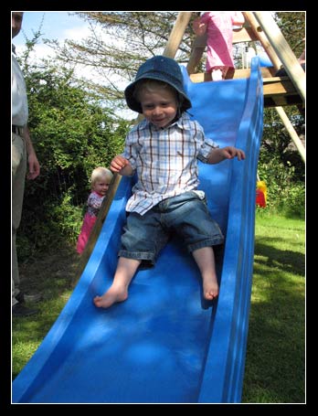 Av oss fick Theo bla en gungställning till trädgården med tillhörande rutschkana