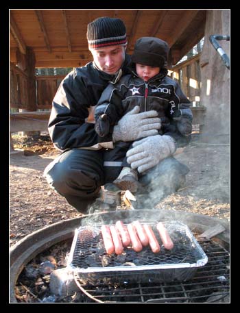 En kall vinterdag grillade vi korv efter en långpromenad i skogen. Mys! |