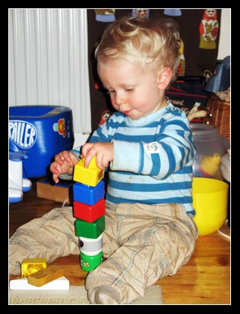 Det började gå allt bättre på dagis, och Theo utvecklades massor. Bygga torn av duplo blev en ny favoritsysselsättning. |