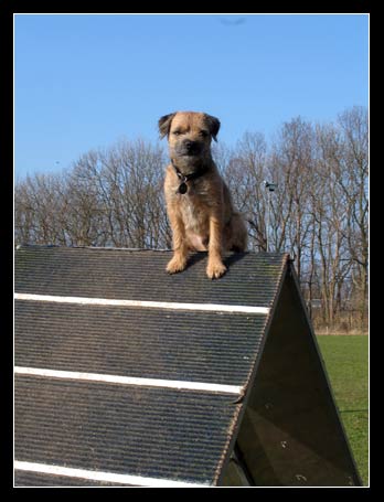 Det började så smått knoppas ute och jag började ta upp agilityträningen med Biggles så smått. Det började dock bli näst intill omöjligt att ha Theo med på träningen - han klättrade på alla hinder alternativt rev ner alla bommar... |