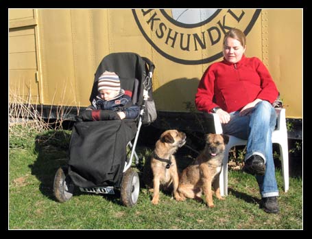 Mer agilityträning på hundklubben. Med kex som mutor förblev Theo sittandes i vagnen, åtminstone korta stunder :-). |