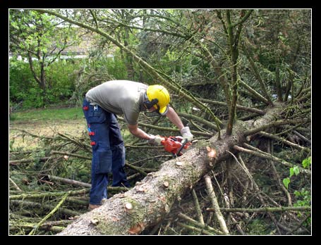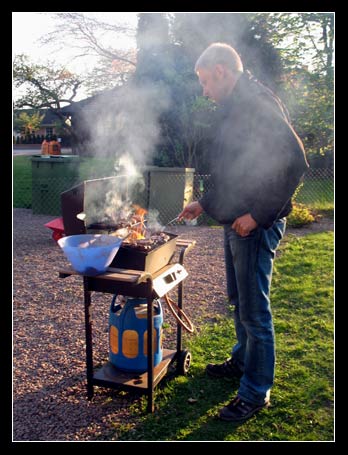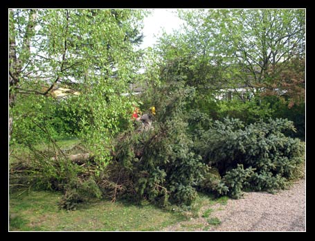 I slutet av april avverkade vi "skogen" i vår trädgård. Stefan, Pär och Thomas slet som djur en hel dag och vi fyllde upp en hel container och ett par släp med skräp. Resultat: En helt ny tomt! På kvällen startade vi årets grillsäsong. |