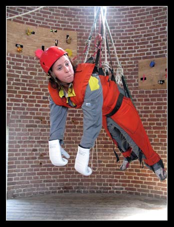I början av juli var jag med på Ninas möhippa. Vi testade bla en äventyrsbana á la fångarna på fortet, på Borgen. Den blivande bruden, som ses hänga ovan, hävdar fortfarande att denna aktivitet var en av de roligaste hon har gjort :-D. |