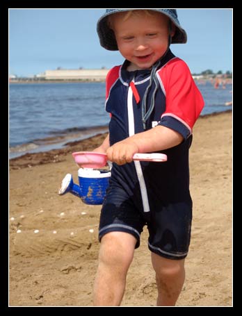 På väg hem stannade jag hos familjen ett par dagar, och fick sommarens enda riktigt fina stranddag på Skrea Strand. |