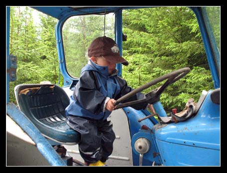 På samma tripp besökte vi även Maria & Erik och kollade in deras Luteboprojekt. Theo fick provsitta traktorn och var överlycklig. Pappan var ganska avis på Erik, för att han hade en traktor...;-). |
