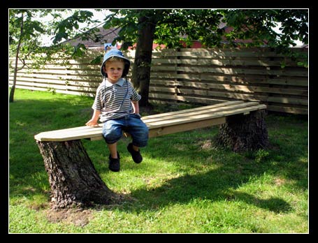 Pär byggde en bänk av ett par av de gamla stubbarna som vi lämnat kvar sen trädfällningen. |