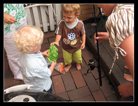 Theo gick på kalas hos Felix och fick testa fiskdamm. Han fick upp en godispåse och smakade godis för fösta gången. Han var helt lyrisk! |