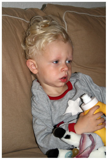 Theo fick öroninflammation och hög feber. Vi fick stanna hemma i över en vecka. Stackars liten. |