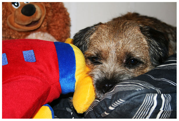 Biggles magbekymmer blev allt värre, och en dag i januari fick han läggas in för operation. En väldigt orolig matte kunde hämta hem sin trötta och rädda hund från veterinären på kvällen, och några dagar senare kom diagnosen: Kronisk odefinierbar gastrit. En närapå årslång medicinering påbörjades. I skrivandes stund, ett knappt år senare, är Biggles fri från medicin och magen hålls i schack med hjälp av dietfoder. Återfall är att vänta enligt veterinären, men går då att åtgärda med rätt medicin.