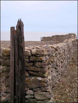 Fåren strövar på många ställen fritt på Fårö. När man har passerat en färist kan det mycket möjligt komma får gåendes mitt på vägen! Den vackra stenmuren nedan är en av gränserna för var fåren kan ströva fritt. Stenmurar som denna förekommer för övrigt överallt både på Fårö och Gotland.