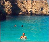 Vid båtutflykterna brukar båtarna stanna flera gånger för bad. Båten vi åkte med stannade bland annat vid Skinari, The Blue Caves. På vissa ställen åker båtarna in med fören i grottorna, och på något ställe kan man simma cirka 100 meter rakt in i berget. Där inne lyser grottväggarna klart blått Det finns många fina stränder att testa på Zakynthos. Nicholas Beach på Vassilikos halvön är en mysig lugn strand med bara ett par tavernor. Där finns också ett dykcenter där man kan testa dykning utan att ha certifikat. Efter instruktioner av dykledaren genomförs ungefär en halvtimmes dyk. Det finns flera rutinerade dykare med och är beredda att hjälpa till om så skulle behövas. Att dyka var helt fantastiskt! Missa inte ett besök i huvudstaden på Zakynthos, Zante town. En mysig liten stad med gränder, caféer och små butiker. Till Zante town går det lokalbussar från Laganas. Bussarna går lite när chauffören vill, så det gäller att inte ha någon tid att passa!