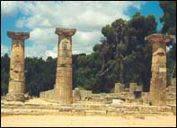 På Pelenoposseshalvön på det Grekiska fastlandet ligger byn Olympia, där de första olympiska spelen hölls år 776 f.kr. Till Olympia är det lätt att göra en dagsutflykt från Zakynthos med båt och buss. Väl där finns det guidade turer runt den gamla stadion,The Gymnasium och platsen där OS elden tänds vid varje OS. På bilden nedan ses just den platsen.